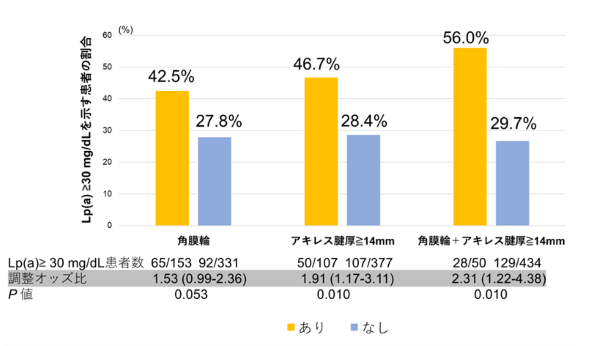 - 角膜輪とアキレス腱の肥厚は、血中Lp(a)値の上昇と有意に関連していた。