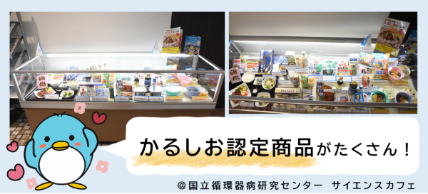 国立循環器病研究センター内にあるサイエンスカフェにて、かるしお認定商品を展示しております!