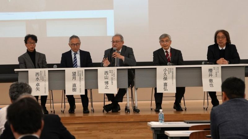 シンポジウムの最後には、パネルディスカッションが行われました。議長は、坂田恒昭氏(大阪大学共創機構特任教授、近畿バイオインダストリー振興会議理事長)。「つくばデジタルバイオ国際拠点」と「国立循環器病研究センター」が今後さらに連携を深め、産官学民の共創を通じて健康寿命延伸を社会に実装していく方向性を議論しました。