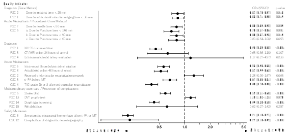 臨床転帰との関連を評価し得た医療の質の指標20項目のうち、14項目は、院内死亡率の低下(Odds[95%CI]、来院からrt-PA静注療法開始までを60分以内に達成すること、0.80 [0.69–0.93]、来院から血栓回収療法を90分以内に開始すること、0.80 [0.67-0.96]、有効再開通の達成、0.40 [0.34–0.48] など)に関連しており、また11項目は退院時の機能的自立の増加に関連していることが明らかとなりました。